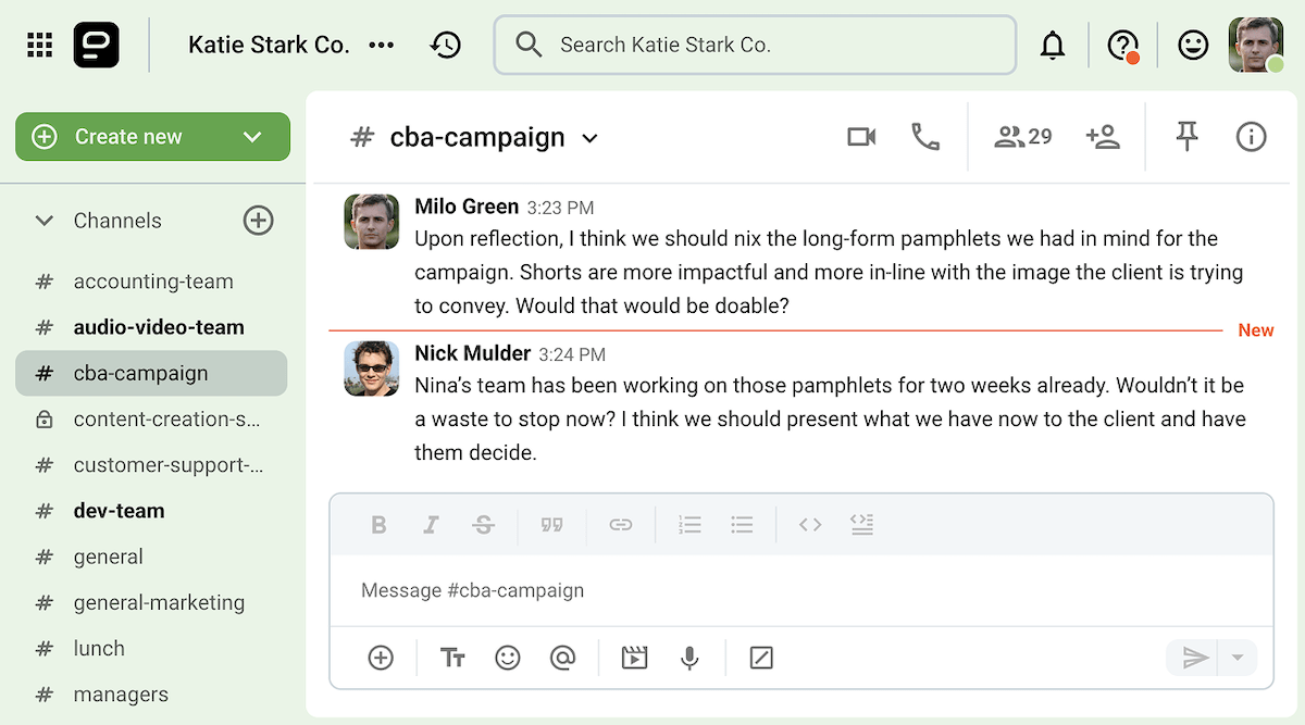 Pumble, a business messaging app, can help you realize your full potential as a leader or a manager by centralizing communication and making collaboration easier. You can use it to: