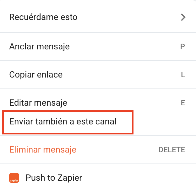 Puedes enviar un mensaje en hilo a un canal más grande para notificar a todos los usuarios. Para hacerlo, simplemente marca la casilla de verificación Enviar también a #canal antes de enviar el mensaje. Además, puedes hacer esto retroactivamente siguiendo estos pasos: