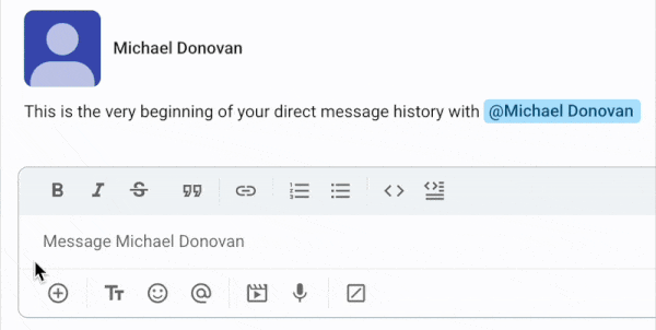 in the message editor of any direct message or channel and press enter. A new meeting link will be instantly generated for you to use.