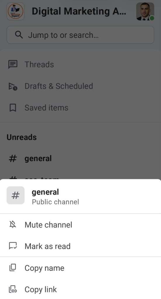 - Click on the three dots next to the channel/user that sent you the message