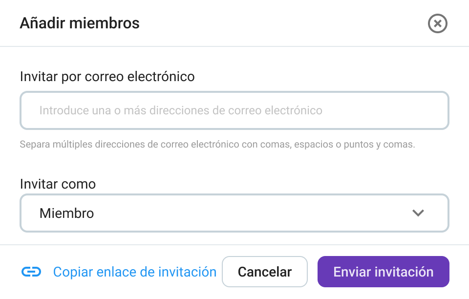 - Introduce la(s) direccion(es) de correo electrónico de la(s) persona(s) que quieres invitar