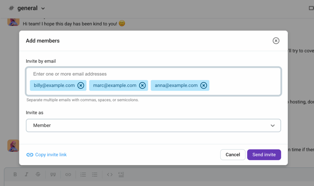 So, instead of flooding them with emails or granting full access to your workspace, you can invite them as multi-channel guests in Pumble.