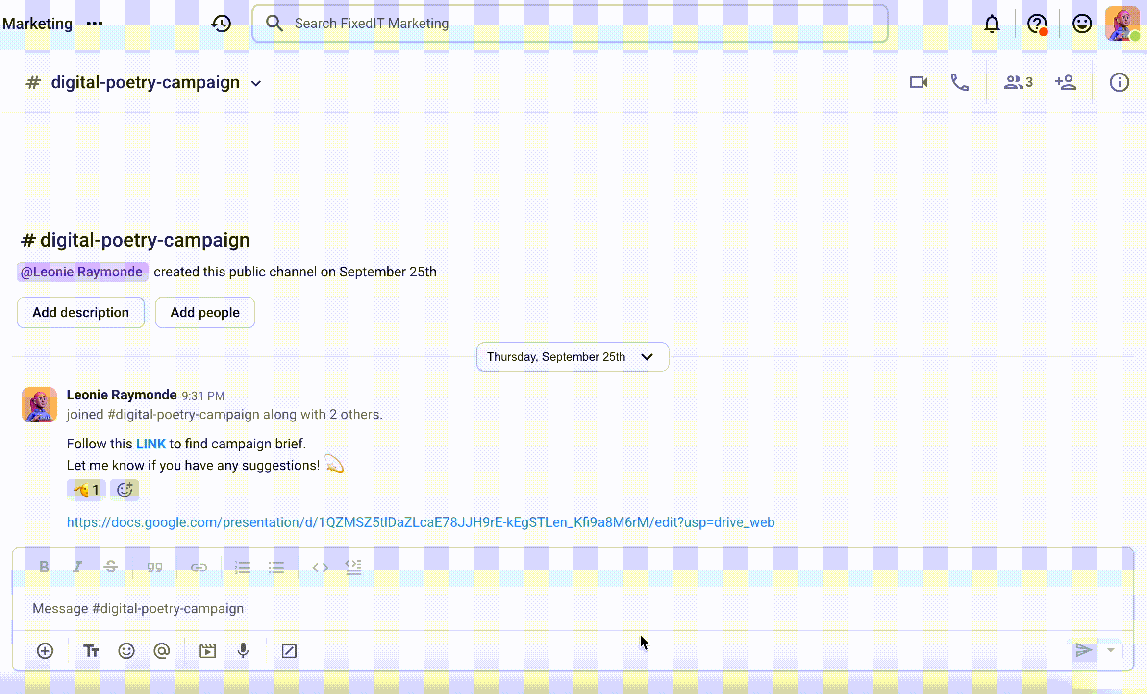 On the other hand, if the information is classified, you can create a private channel or send a direct message to one or more colleagues.